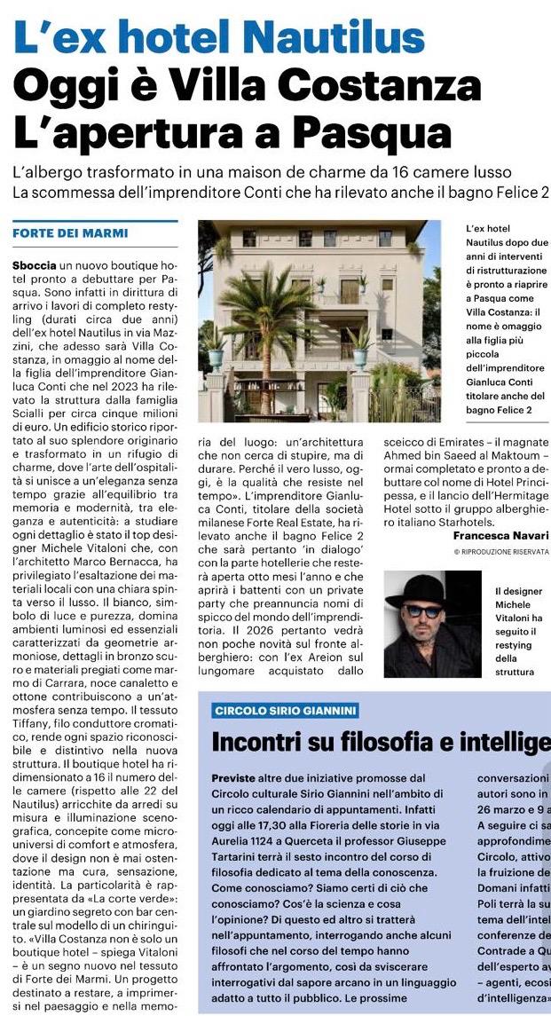 Villa Costanza rappresenta una nuova visione di hotel design a Forte dei Marmi: spazi su misura, identitą forte e qualitą progettuale pensata per durare nel tempo.